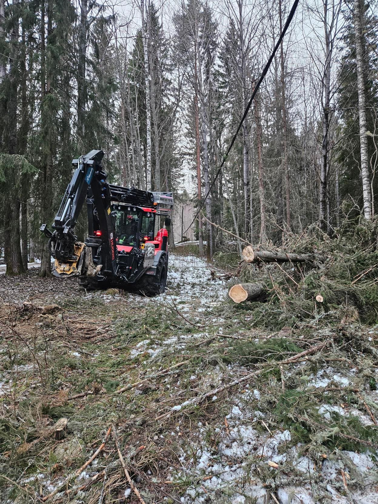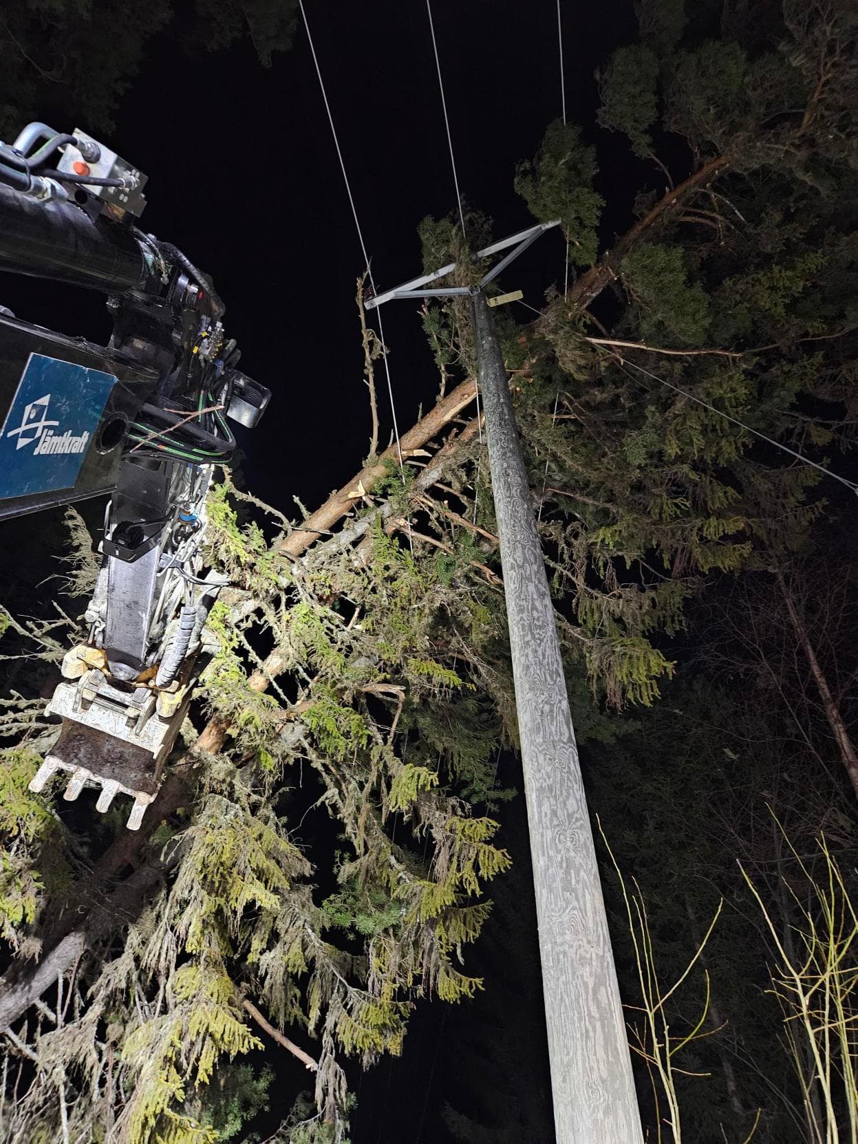 Träd som fallit över ledning tas bort.