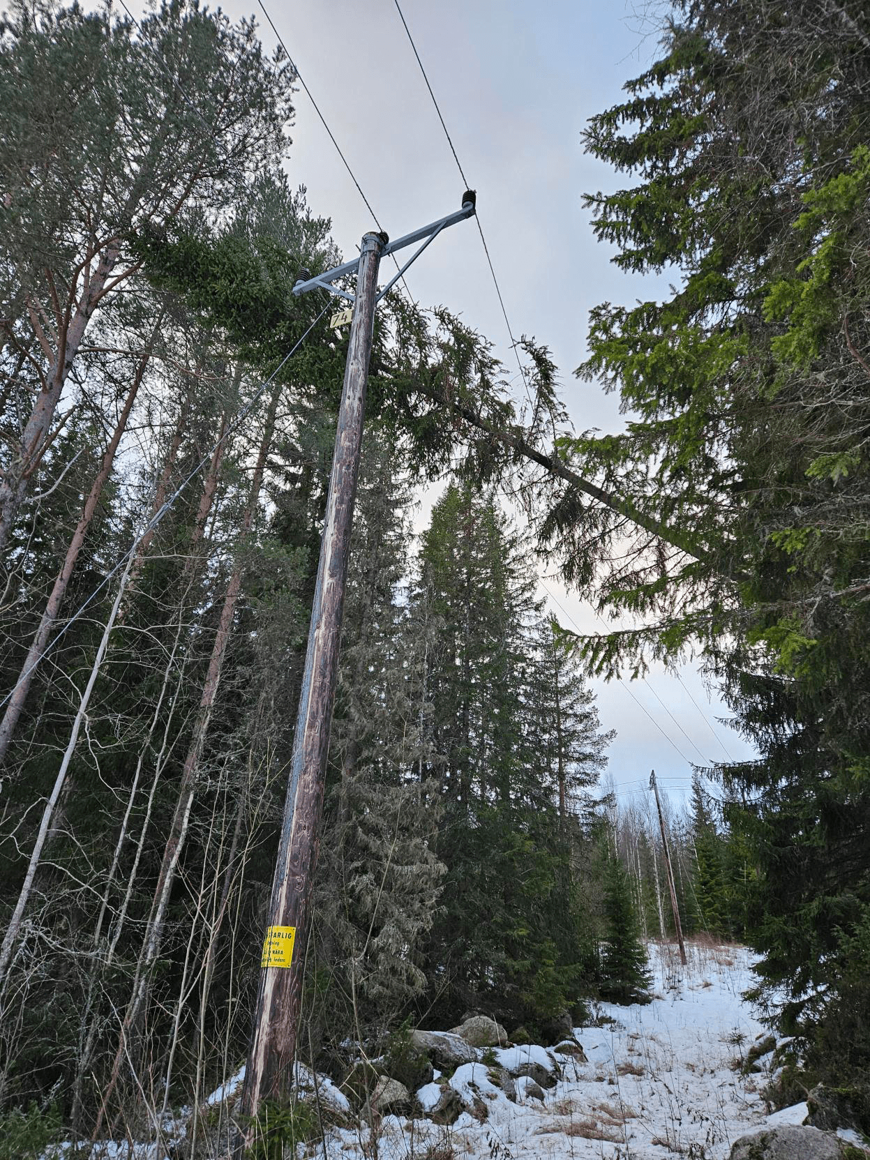 Träd har fallit över ledningen.